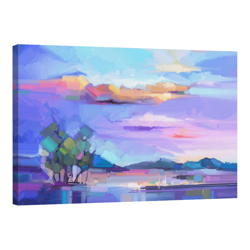 Пейзаж с езеро в лилаво